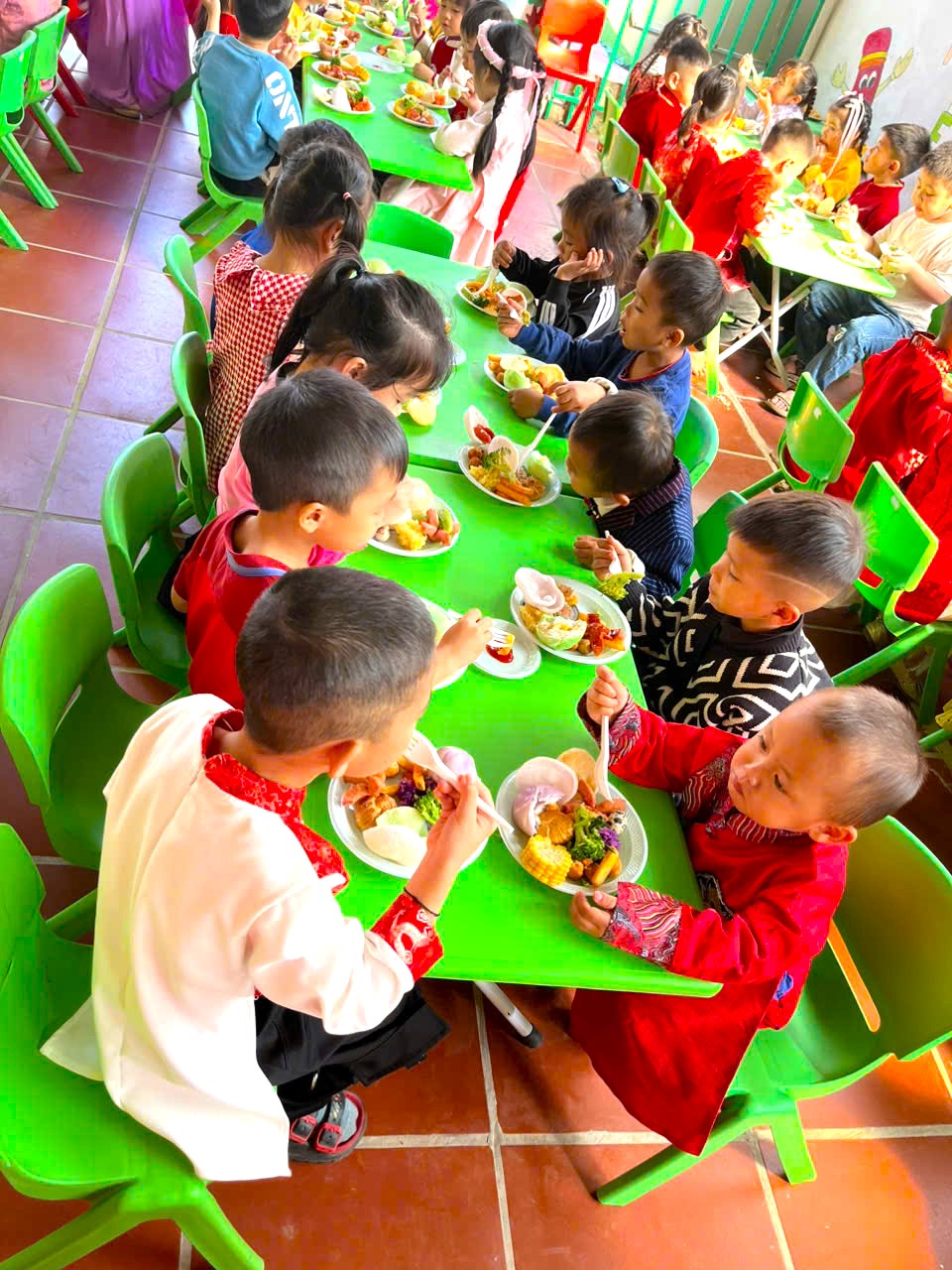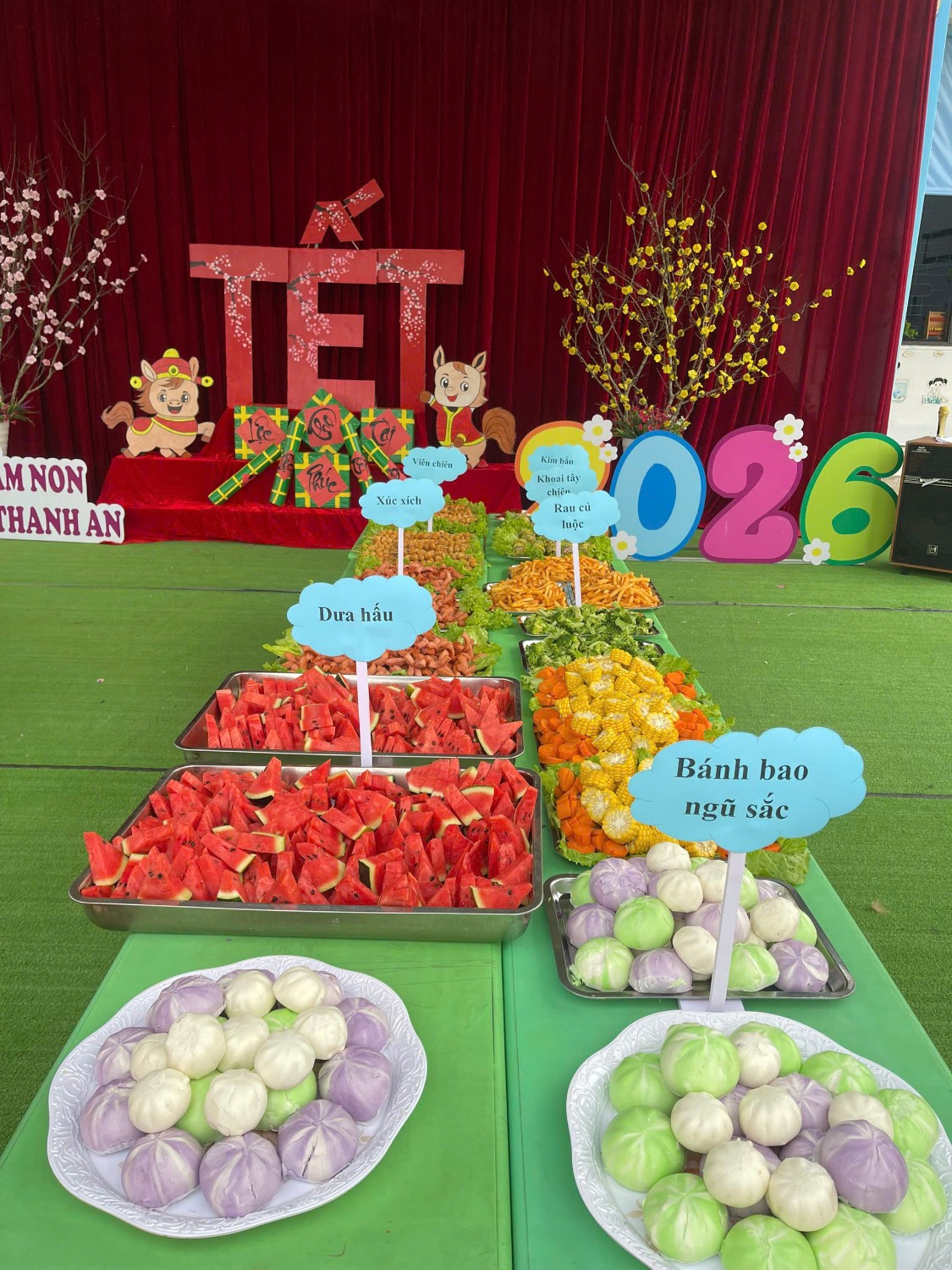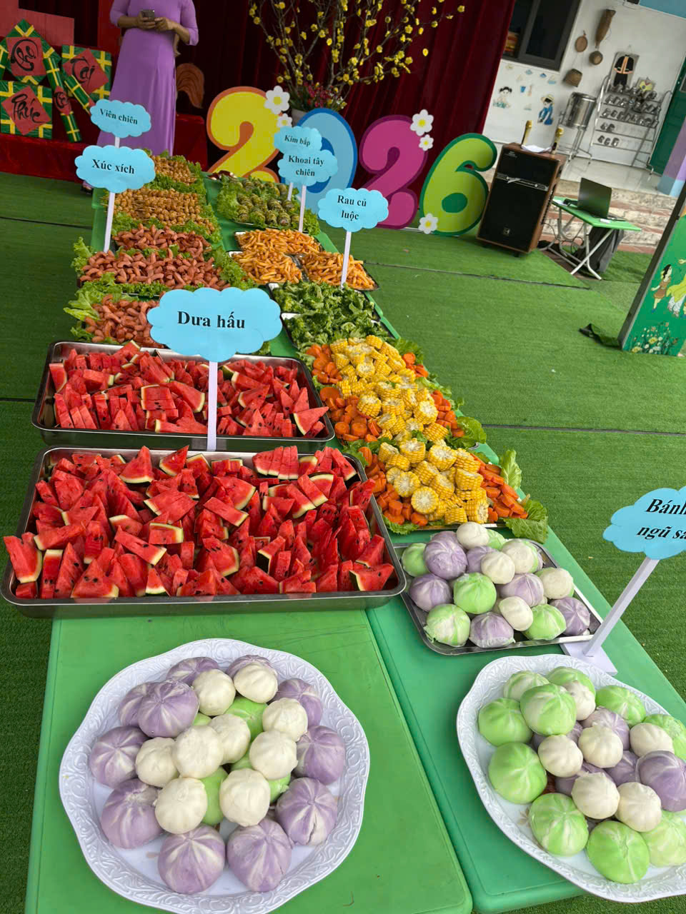 - Cơm- Canh bí đỏ hầm xương- Bò nấu đậu- Dưa hấu